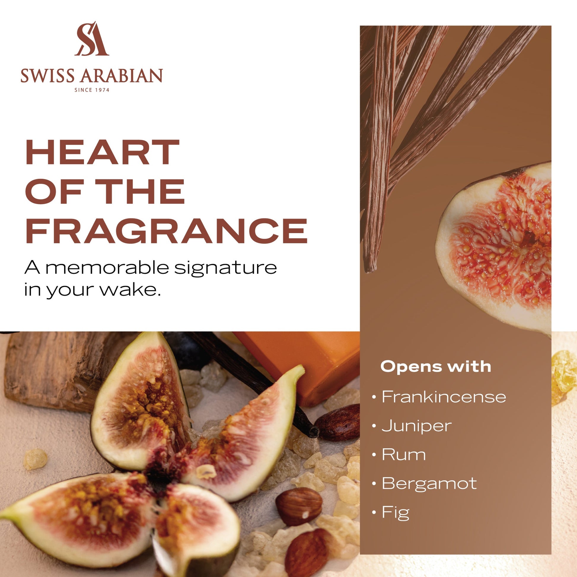 It opens with frankincense, juniper, rum, and bergamot for an intriguing, boozy-spicy burst. The heart reveals fig, hazelnut, roasted nuts, almond, and lily of the valley for sweet, earthy warmth. It dries down to frankincense, dark chocolate, vanilla, sandalwood, cedarwood, and moss — enveloping and long-lasting.
